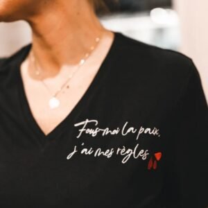T-shirt col noir brodé