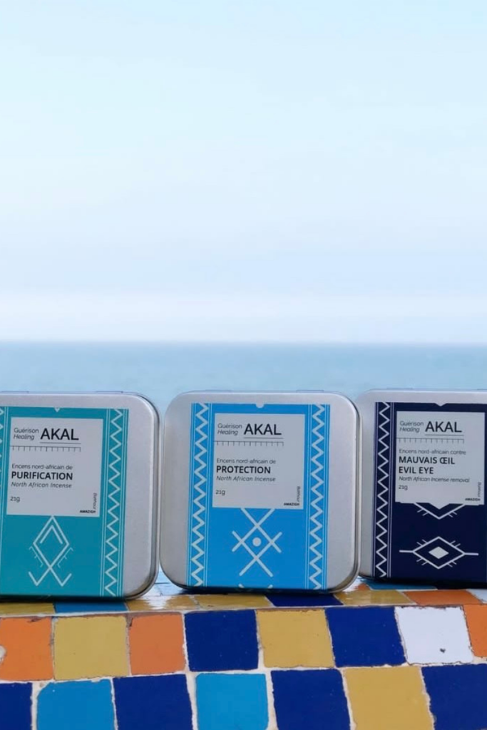 Le jawi blanc ouvre les voies spirituelles, la résine marocaine relie à la terre et à la mémoire, et la pierre d’alun Chebba agit comme une protection énergétique naturelle. Utilisé avec charbon dans un brûleur, le Bakhour devient un acte de présence consciente, un moment de silence habité.